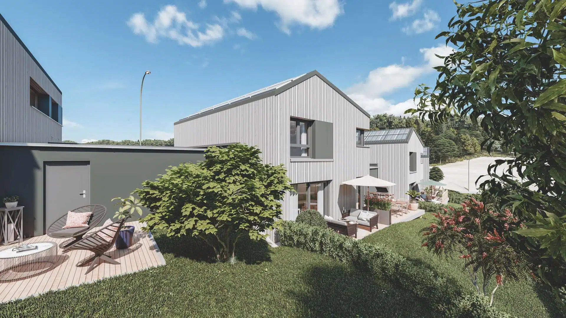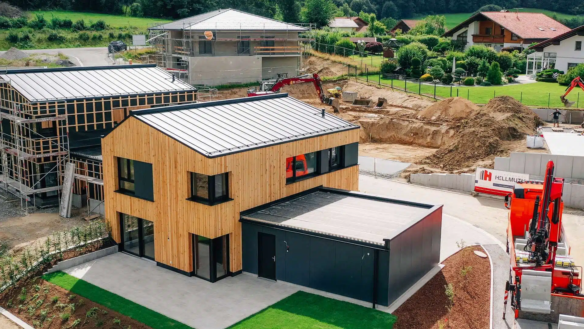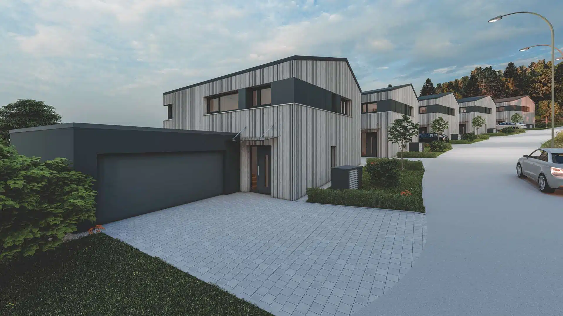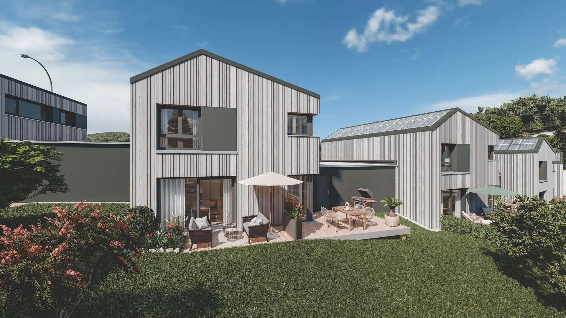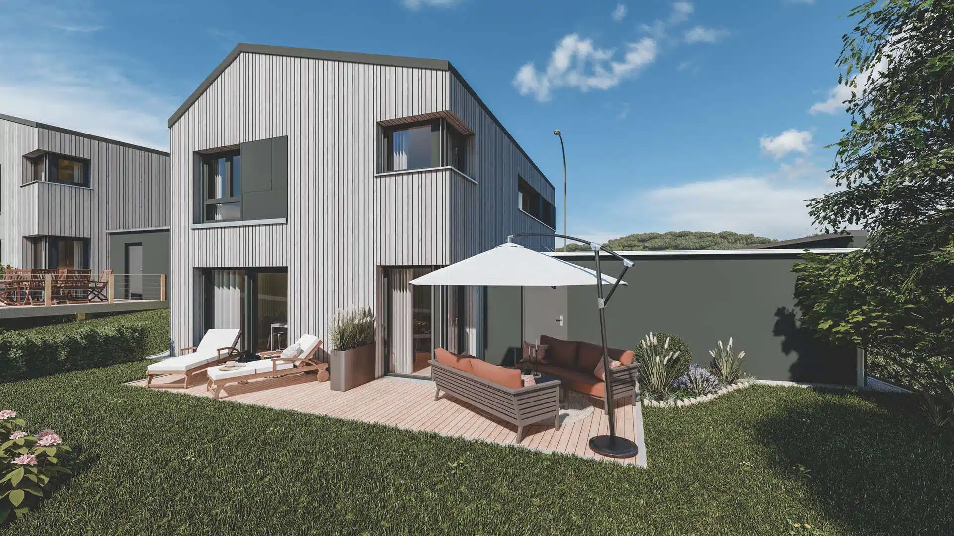 Die Einfamilienhäuser werden schlüsselfertig in nachhaltiger Holzmassivbauweise erstellt.