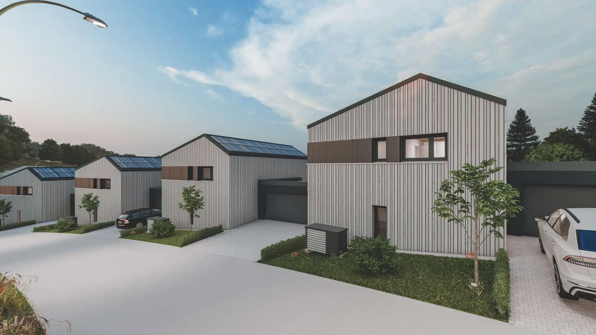 Die Häuser werden mit einer Luft-Wärmepumpe geheizt.