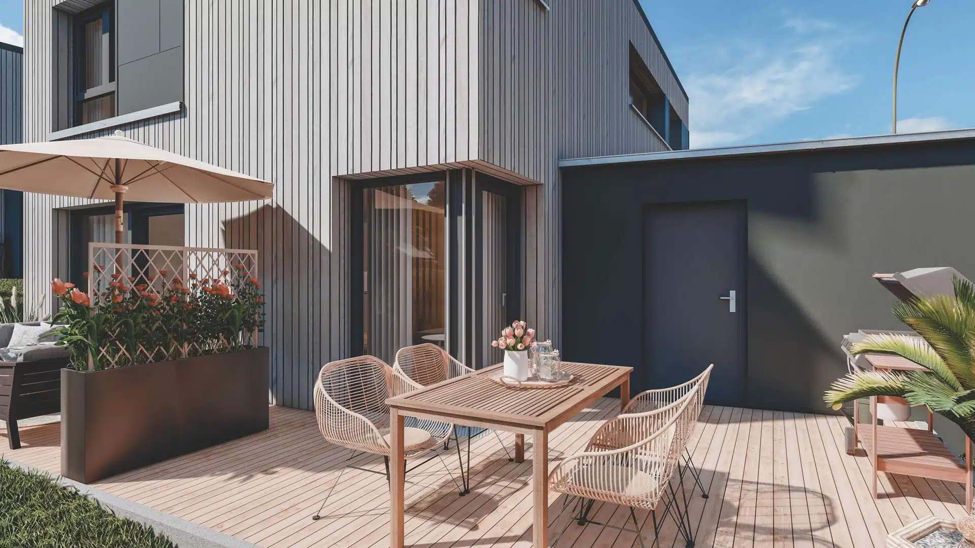 Die Häuser werden in umweltfreundlicher Holzmassivbauweise in unserer neuen Produktionshalle „Woodbloc“ in Regen gefertigt. Schlüsselfertige Erstellung im KfW QNG Standard.