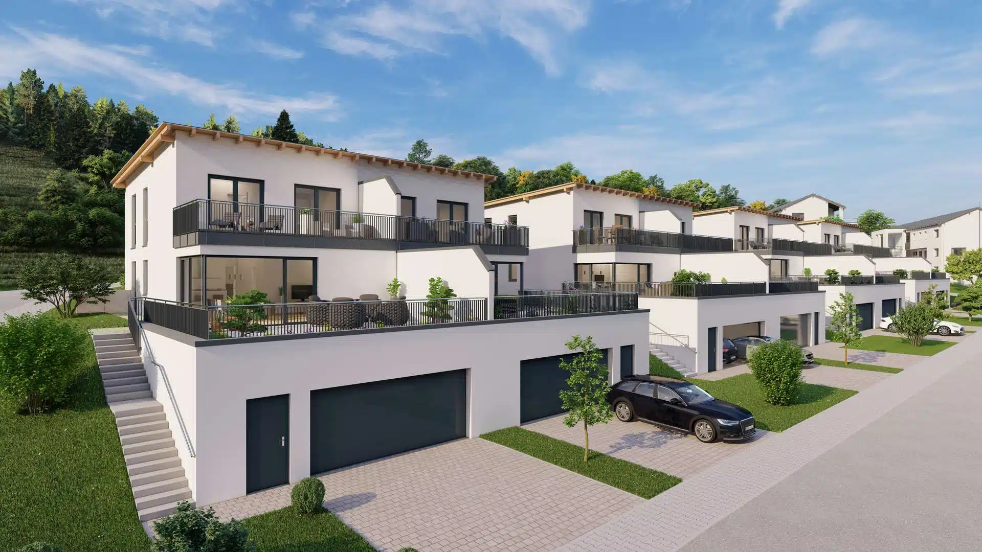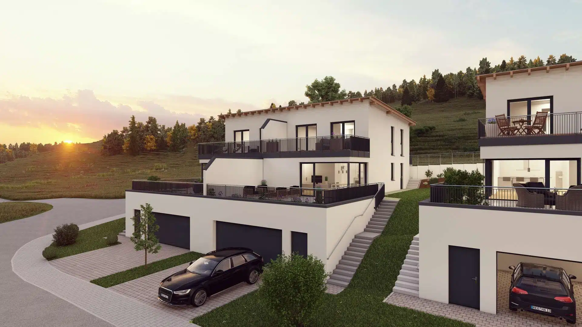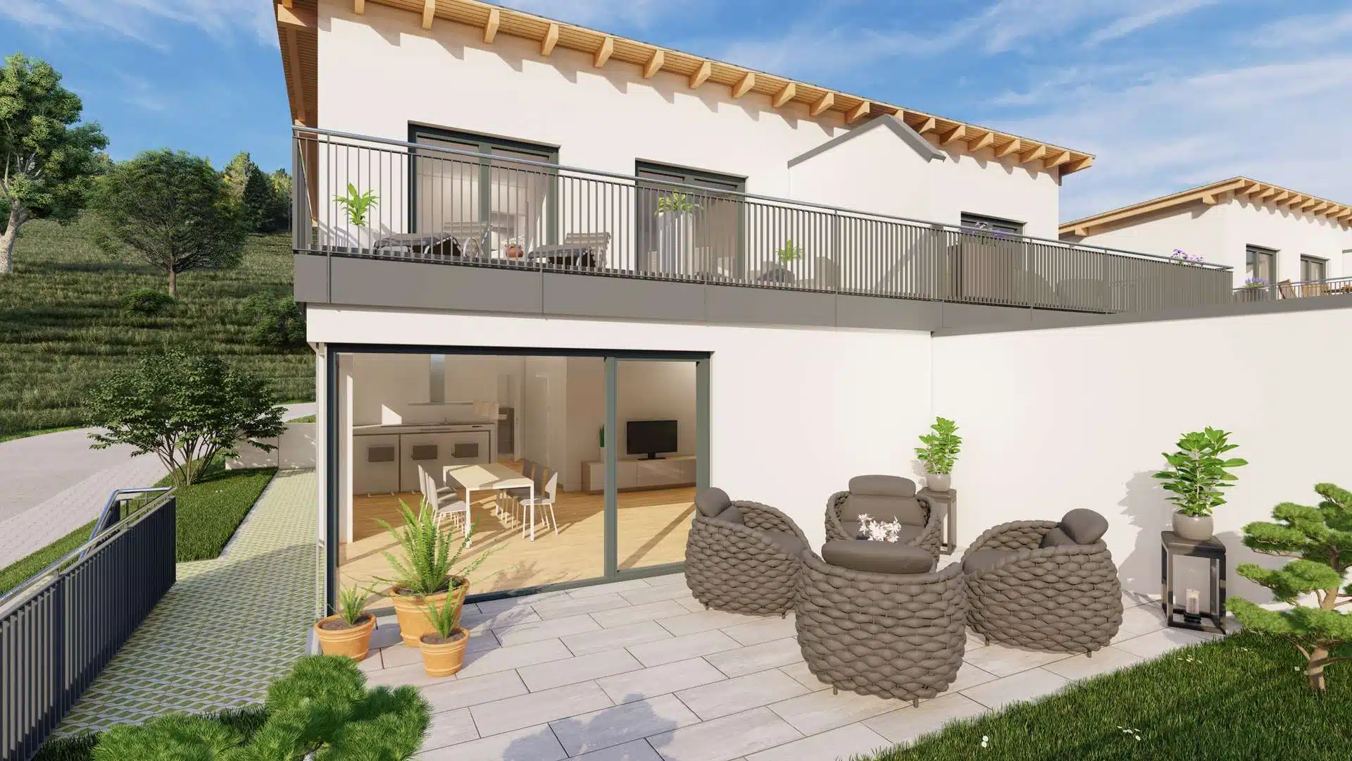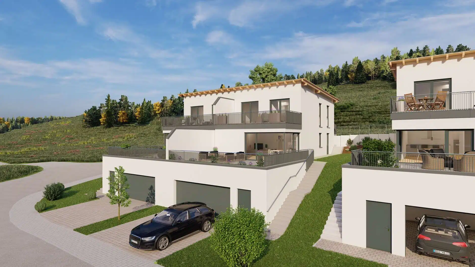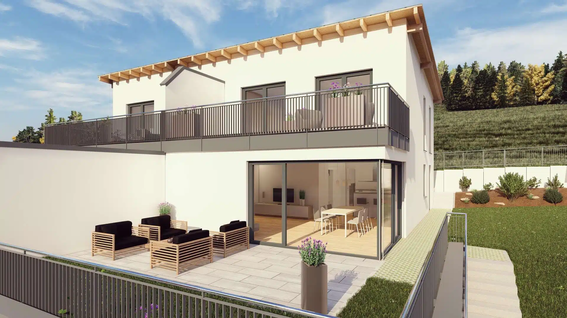 Dieses moderne und energieeffiziente Doppelhaus bietet idealen Wohnkomfort in ruhiger und naturnaher Umgebung.