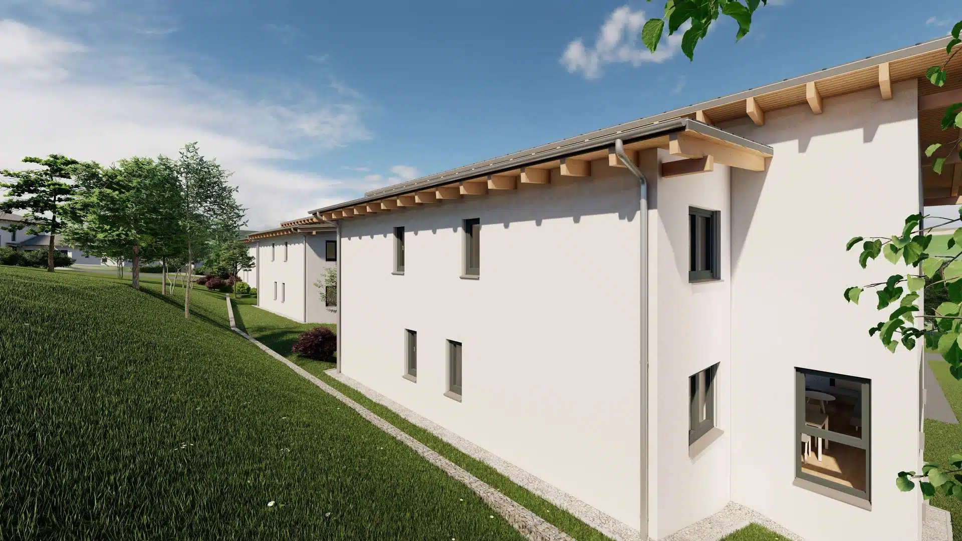 Die insgesamt 8 Doppelhaushälften befinden sich im Bau und werden bereits Mitte 2024 bezugsfertig.