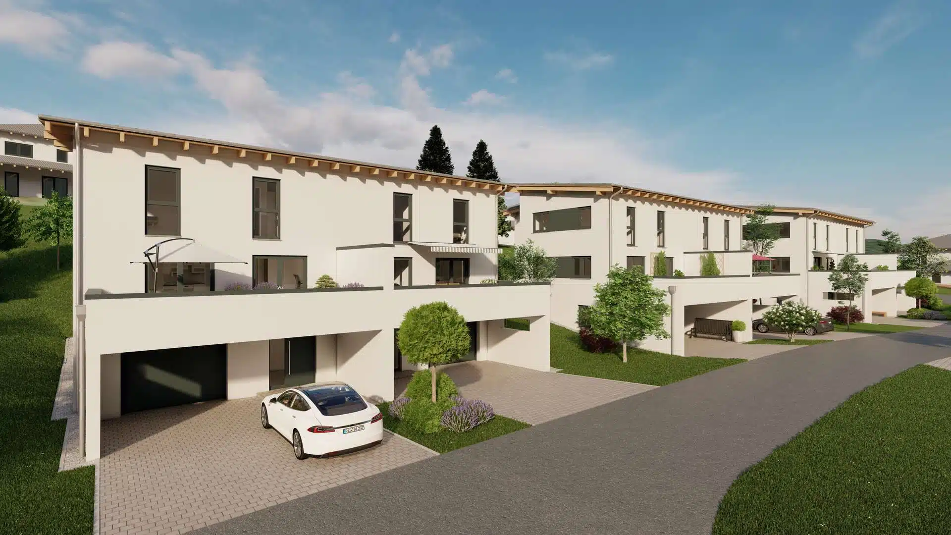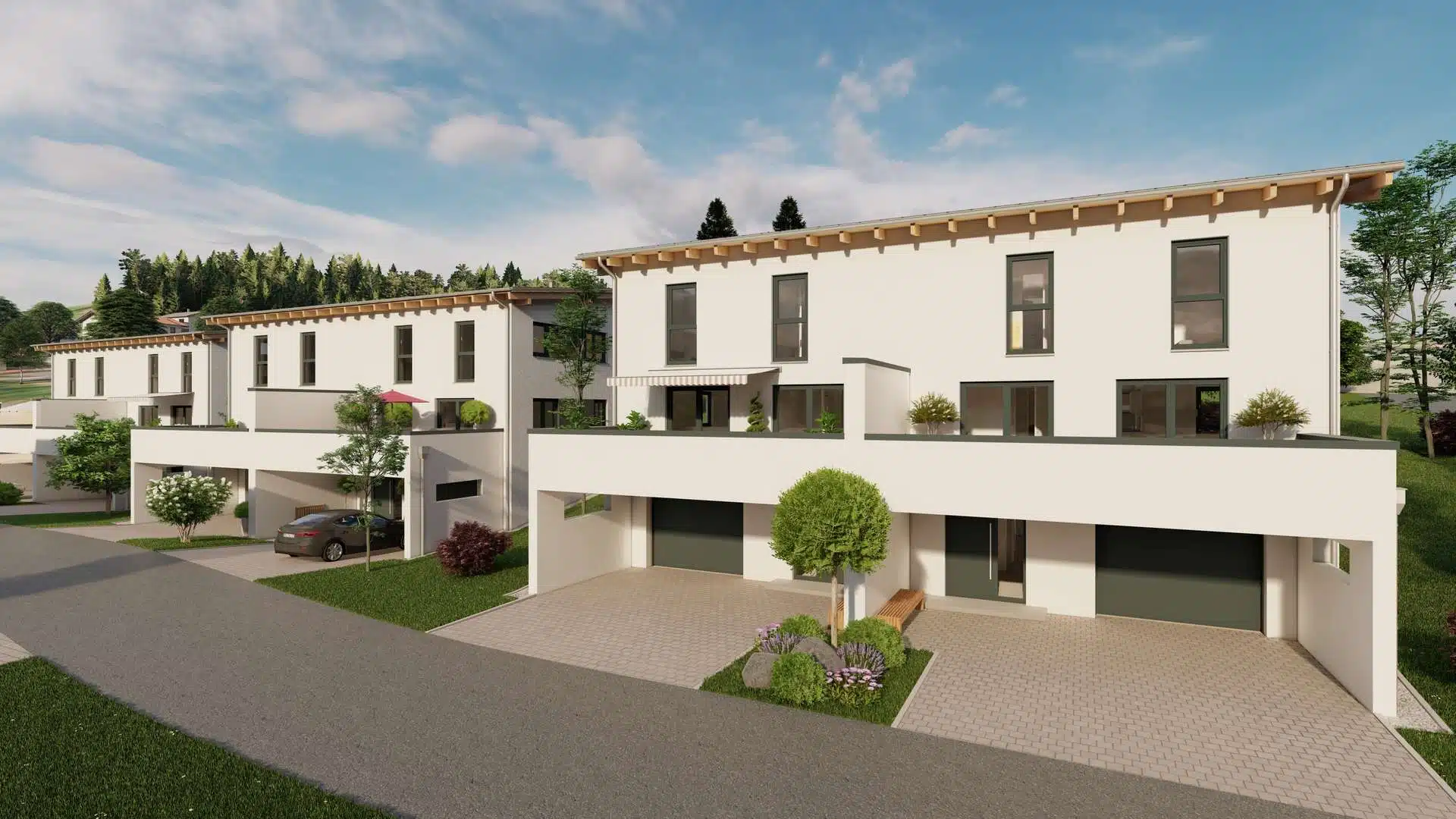 Die neuen DHH im Zirbenweg (Bürgerholzring) stehen für schönes Wohnen – direkt in der Kreisstadt Regen und im Grünen zugleich. Sie genießen die Ruhe am Stadtrand, die kurzen Wege ins Zentrum und das schöne Umfeld in einem neuen, kleinen Wohngebiet.
