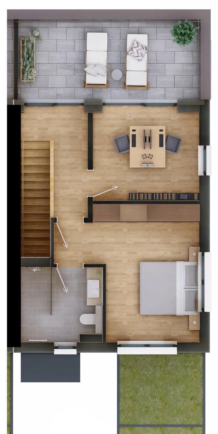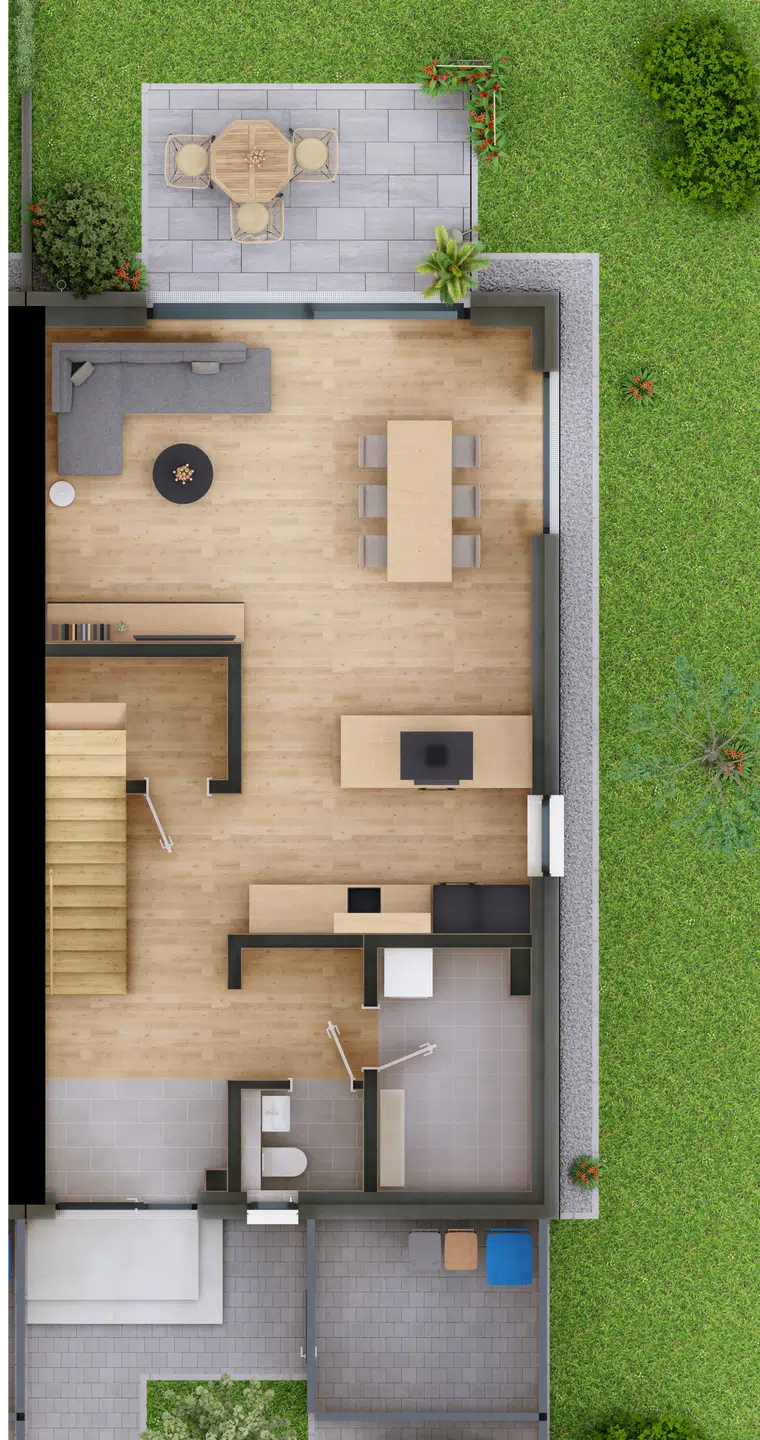 - Gartenanteil & Terrasse bei den Erdgeschosswohnungen
