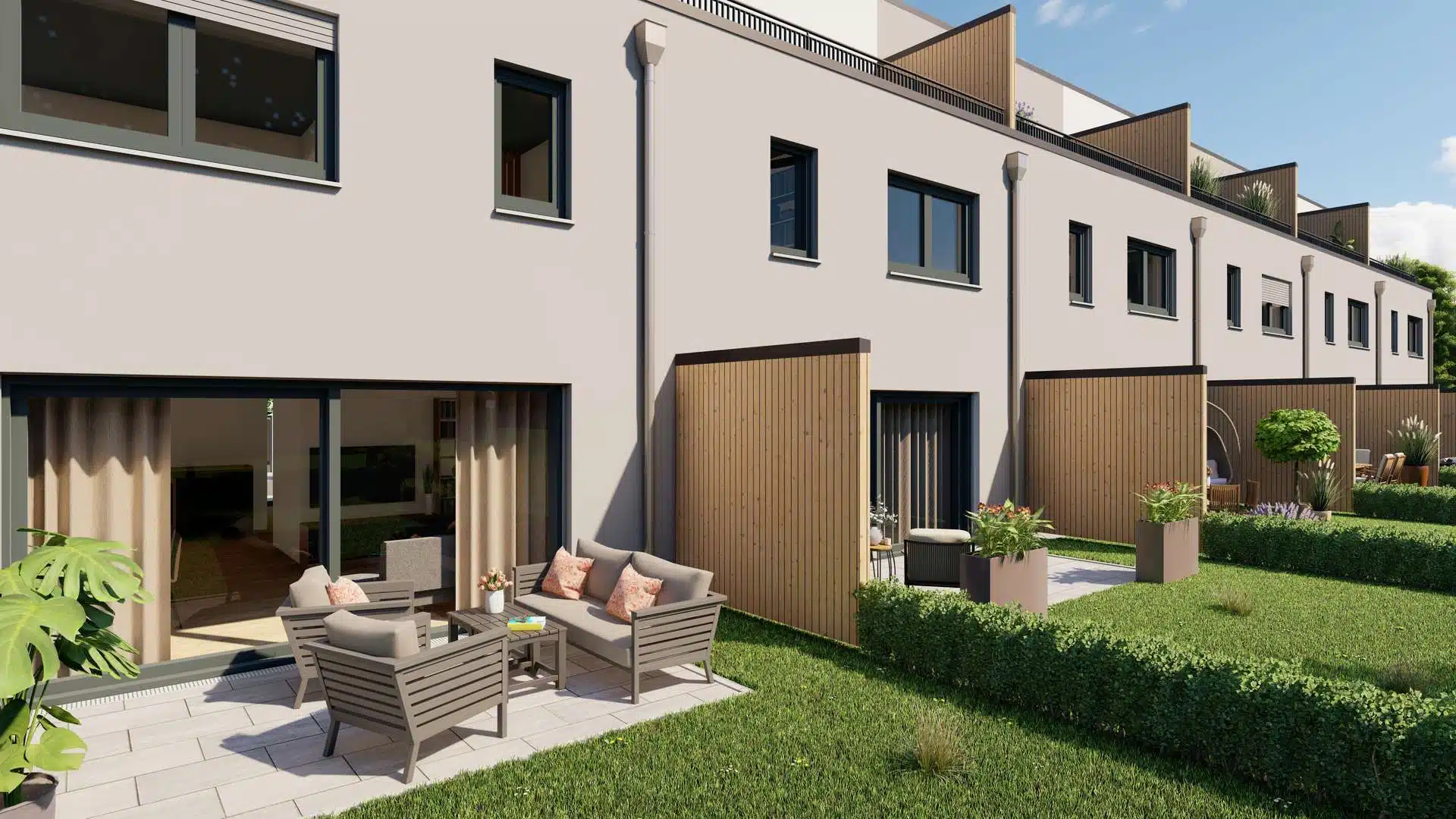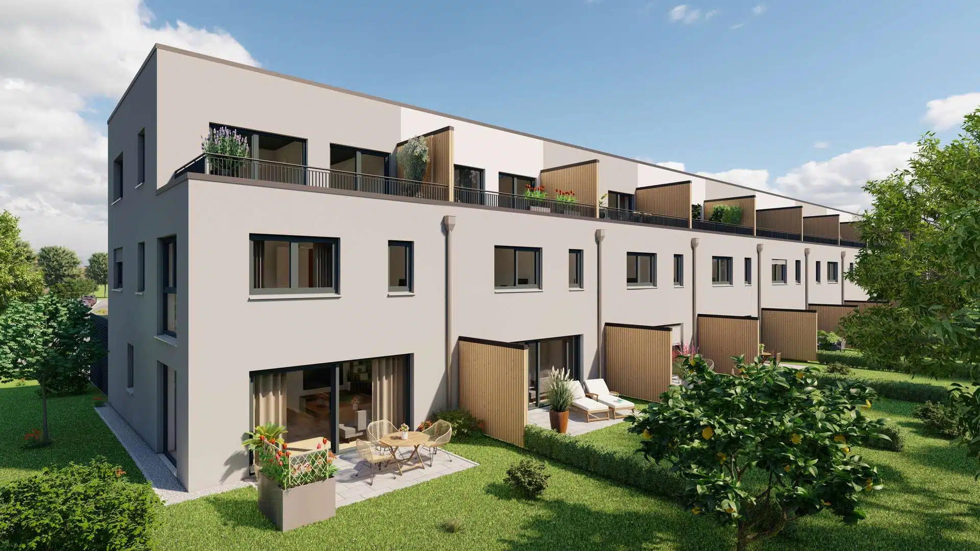 - Reihenhäuser in hochwertiger Woodbloc-Holzbauweise