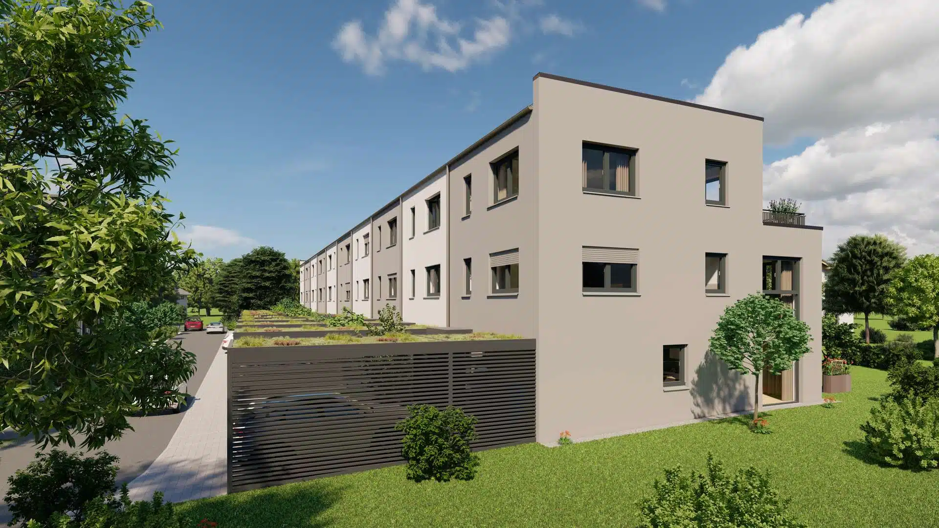 - Wohnungen mit begrünten Dächern und optionalem Batteriespeicher